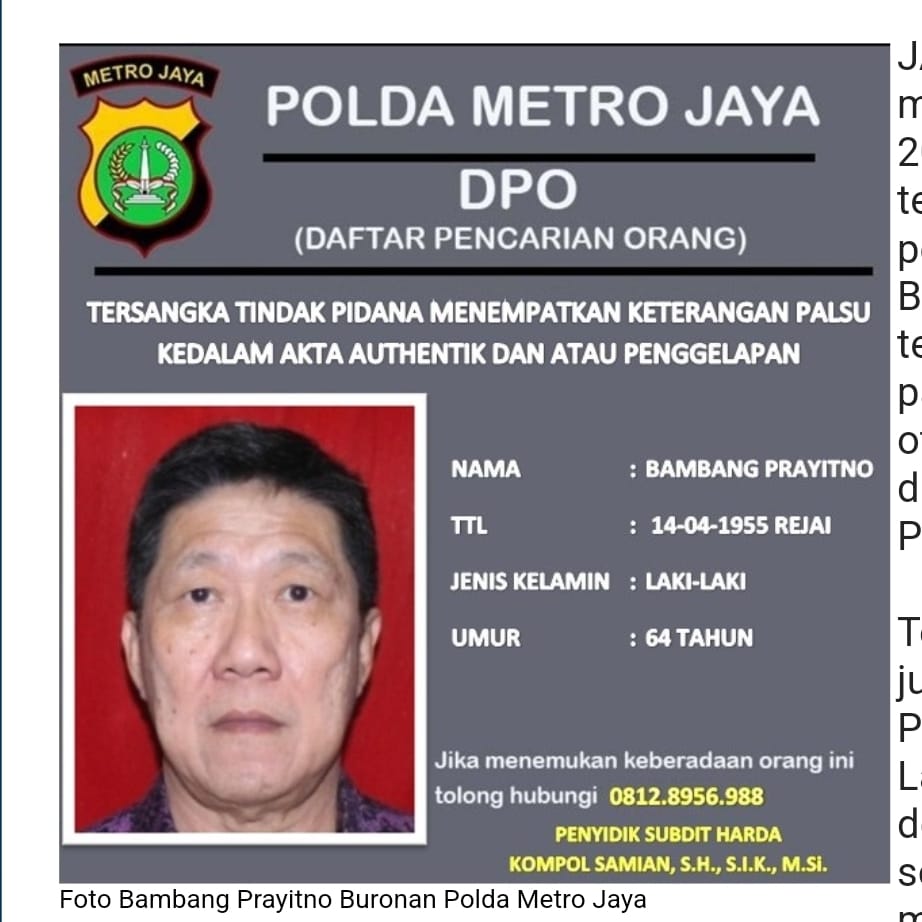 Dan Perkara dari Pelaku Bambang Prayitno sudah dinyatakan P21 atau lengkap Oleh Jaksa Penuntut Umum Kejaksaan tinggi DKI Jakarta.